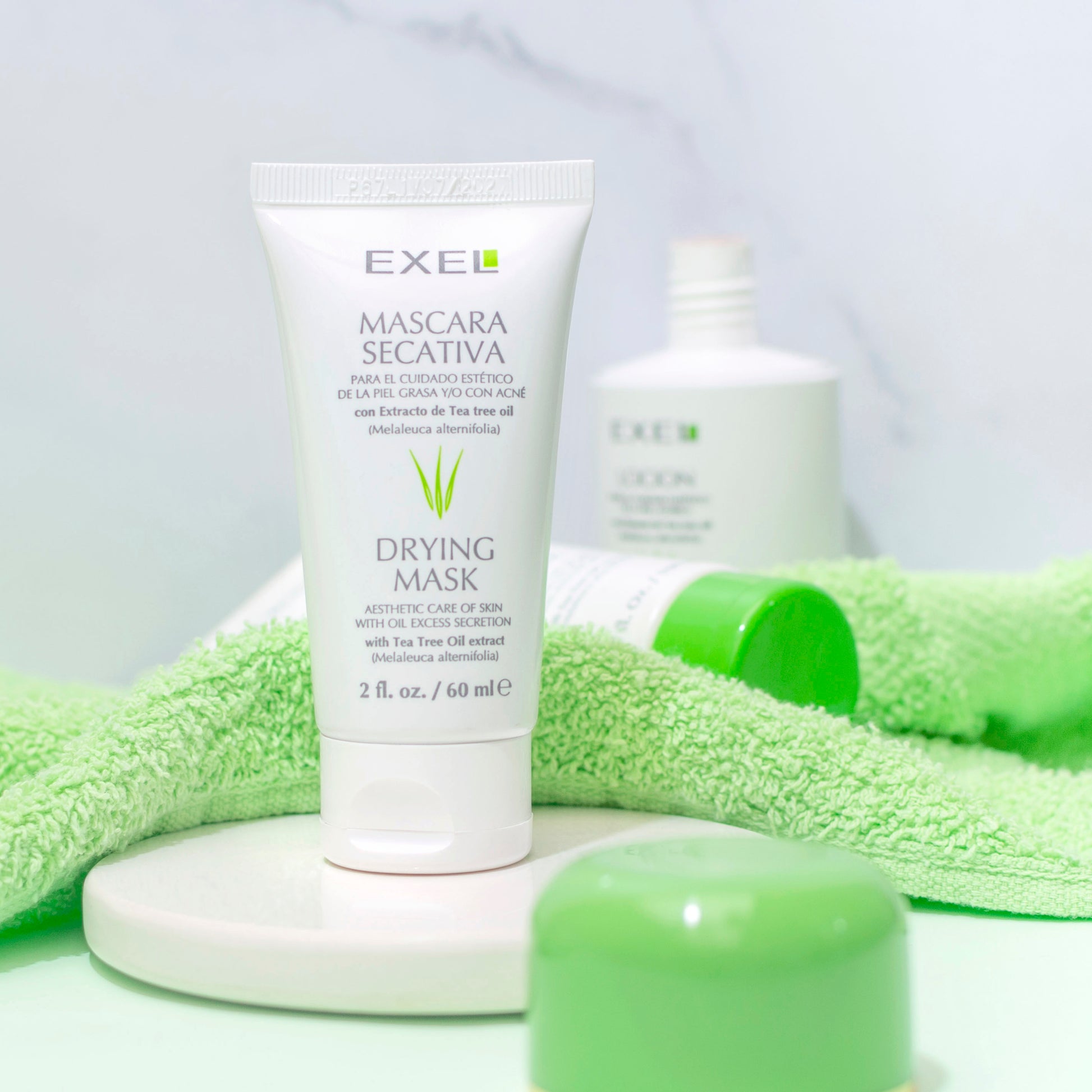Absorbe el exceso de grasitud superficial de la piel, asociando una acción higiénica y a la vez sebo-reguladora.